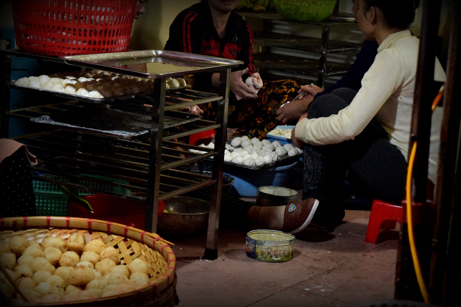 I had the pleasure of visiting one such small store in Hanoi that was led by an older lady. Starring on her menu was the delectable North Vietnamese snack, ‘bánh ran’ (translated to mean fried cake). These rice flour donuts with a subtle sweet jasmine scent, come either with a sweeter mung bean paste inside or savoury fillings such as minced meat. While the vendor started to make these donuts when she was in her twenties, she only got to open the shop about two decades later in the 1990’s, perfecting her recipes over time. These simply yummy donuts are said to evoke a pleasant nostalgia for the locals, many who grew up eating this popular snack.