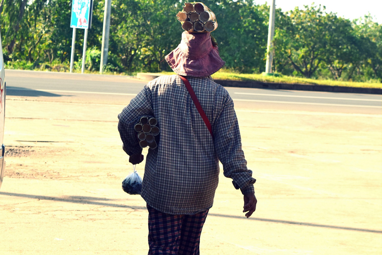 With over fifty types, the hats that women usually wear are often broad-rimmed compared to the smaller-rimmed version for men. Beyond protecting people from the rain and sun, these hats also double up as a basket during shopping, a hand-held fan in hot weather or even a bowl for drinking water – making it a perfect accessory for these street vendors.